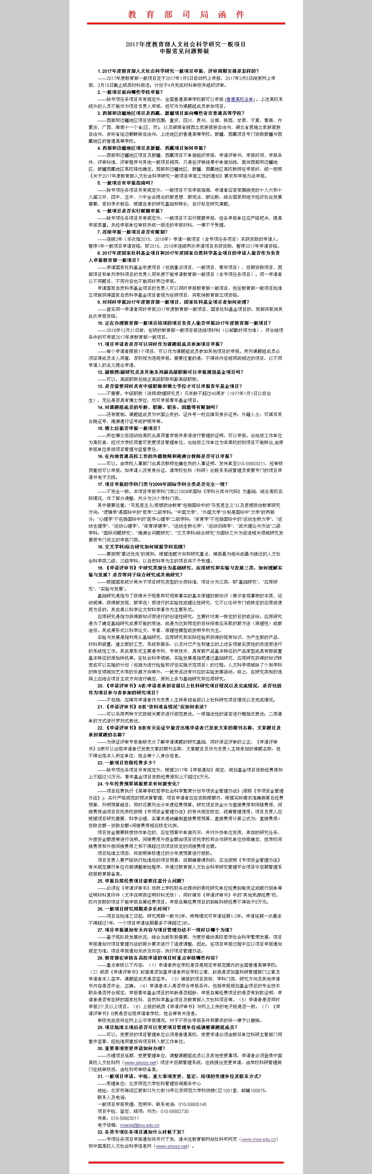 1、教育部社科司关于2017年度教育部人文社会科学研究一般项目申报工作的通知