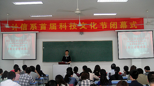 活动伊始,全体师生欣赏了由学生剪辑的科技文化节视频,回顾了1个多月来科技文化节形式多样的活动。接着,计算机与信息技术系副系主任黄华老师为本届科技文化节进行了总结,高度肯定了各活动项目的积极成效,并希望全体师生在今后的工作和学习中要继续发扬科技文化节所赋予我们的蓬勃向上、团结协作、争创一流的精神,为我系早日建成专业特色鲜明、多专业协调发展的计信系而努力奋斗。随后,计信系党总支书记杨军老师宣读了本届科技文化节参赛选手的获奖名单和优秀积极分子。最后,由出席闭幕式的领导和指导老师为本次获奖的学生颁奖,并合影留念。