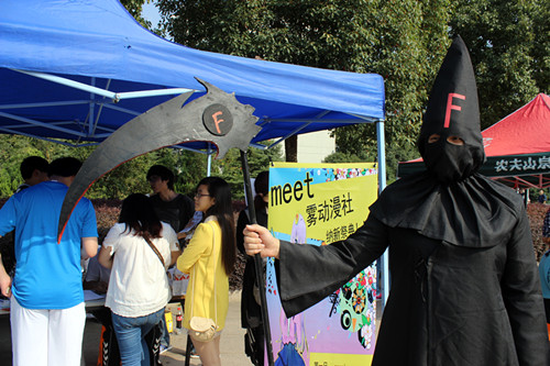 各社团通过海报、横幅、优秀作品展等形式向来往的新生们展示各社的特色。应接不暇的作品展示、激情四射的音乐,好奇的大一新生们穿梭其间,一片热闹的景象。