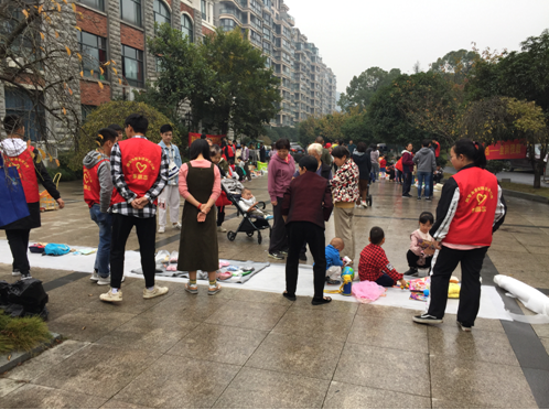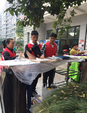 上午8时30分,志愿者抵达绿野春天小区后,积极投入到社区“绿野闲鱼”——闲置旧物分享活动中。志愿者学生协助小区业主悬挂横幅,场地清洁和布置,协助业主摊位物品摆放,维护活动场地秩序,确保活动能够井然有序地进行。在旧物分享活动中,志愿者同学们积极主动和小区居民进行交流,向大家介绍本次活动的意义,帮助有价值的旧物寻找到了新的主人。